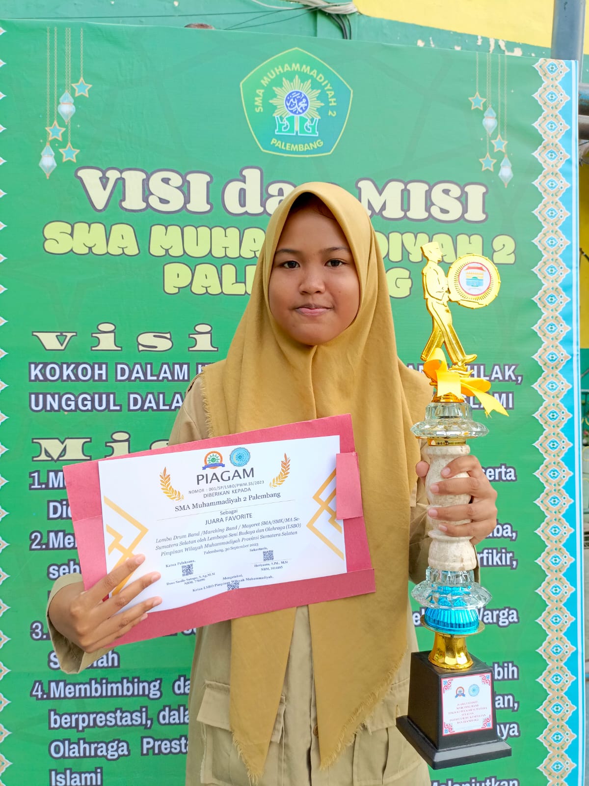 Juara Favorit Lomba Drumband/Marchingband/Mayoret SMA/SMK/MA Se-Kota Palembang oleh Lembaga Seni Budaya dan Olahraga (LSBO) PWM Kota Palembang Tahun 2023